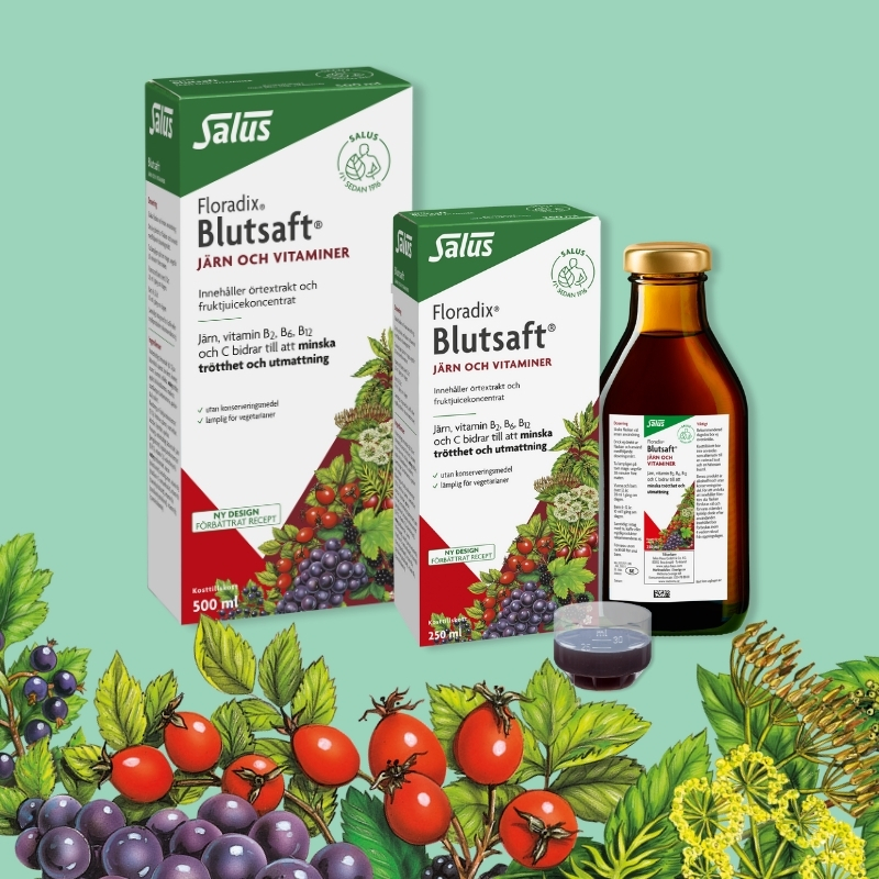 Blutsaft Original finns i klassisk flytande form i två förpackningsstorlekar och även som tabletter för den som föredrar det. Gemensamt för alla Blutsaft Original är: